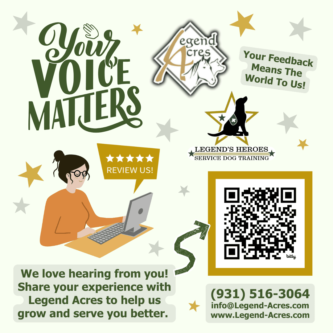 At Legend Acres, your voice truly matters. Sharing your experience helps us grow, improve, and celebrate what we’re doing right. It only takes a couple of minutes, and your feedback makes a big difference in helping us provide the very best for you and your pets.